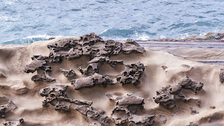 This area was, at one time, a large, sandy beach. It now consists of several layers of harder and softer stone that is differentially eroded to create interesting patterns.